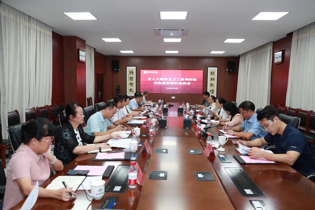 刘湘洪校长代表学校对省人大教科文卫工委调研组莅临指导表示欢迎,并从我校历史、师资队伍、学科建设、人才培养、社会服务等方面汇报了学校的基本情况。