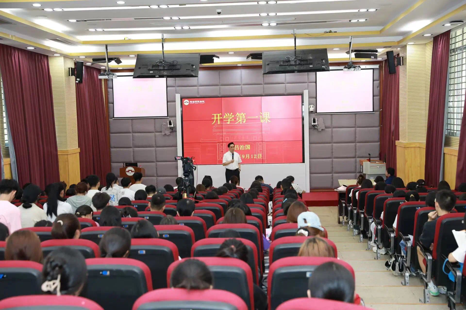 党政办公室、宣传统战部和思政课教师、辅导员、学生代表等近200人现场聆听开学第一课。