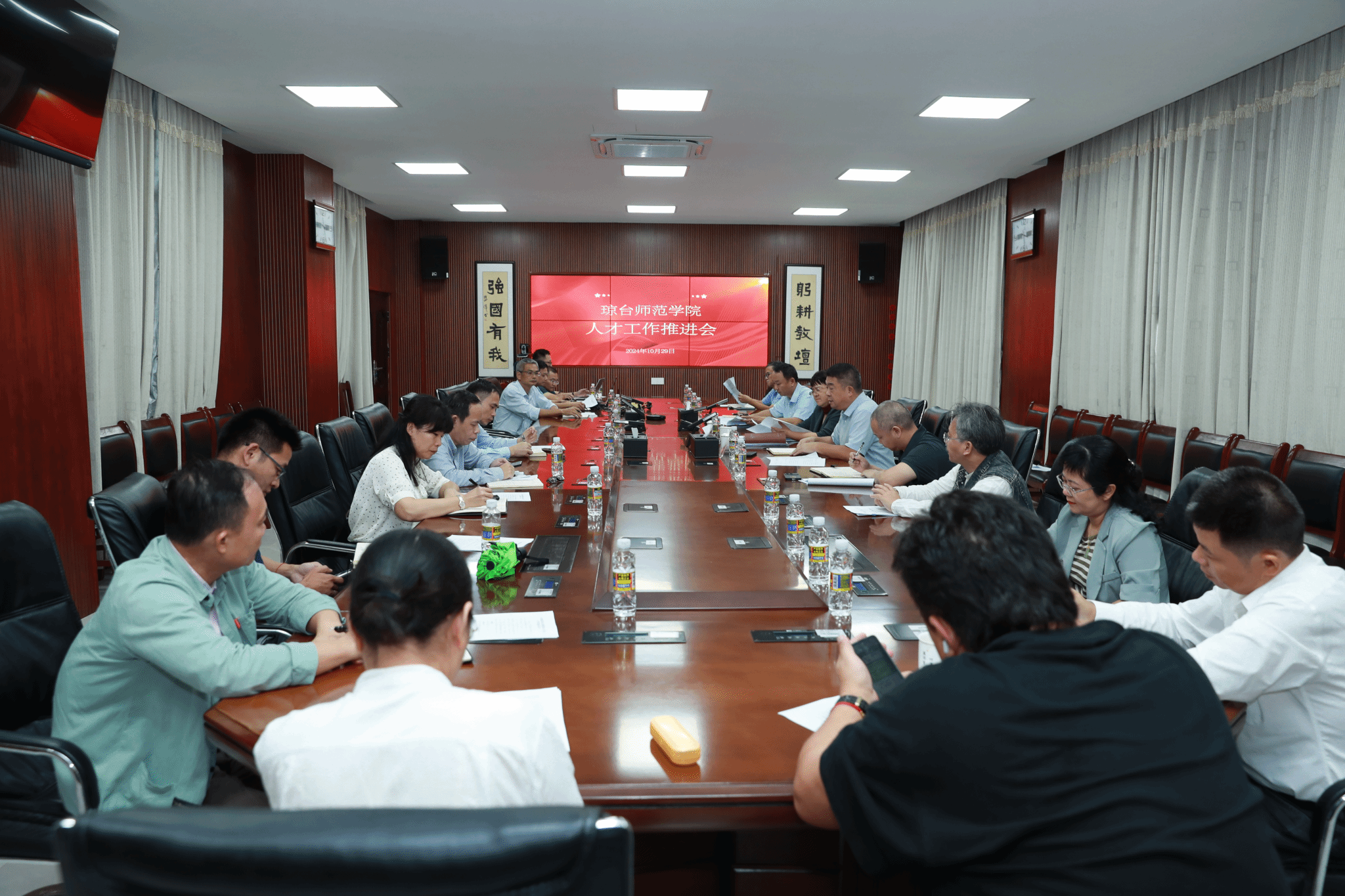 为进一步加强学校人才队伍建设,做好高层次人才和柔性人才引进和管理工作,10月29日下午,我校在桂林洋校区行政楼三楼会议室召开人才工作推进会议。刘湘洪校长出席会议,银海强副校长主持会议,人事处、教务处、科研与学科建设管理处主要负责人,各二级学院党委书记、院长参加会议。