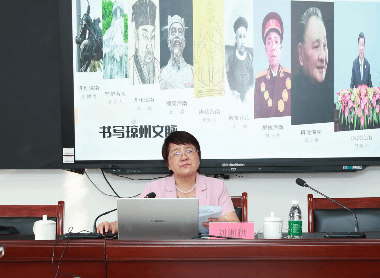 刘湘洪校长以最有代表性的历史人物故事为线索,详细梳理了琼州文脉和琼台历史。她要求:一定要充分用好琼州文脉资源,讲好琼台故事,赓续历史文化传承,最大限度发挥文化育人功能。以习近平总书记关于教育的重要论述为根本遵循,以“躬耕教坛,强国有我”的担当精神,学校要深入实施“876”战略,深耕师范教育主责主业,大力弘扬教育家精神,全面深化教师教育综合改革,主动适应海南自贸港建设和基础教育高质量发展需要,源源不断培养新时代“大先生”和“四有”好老师。