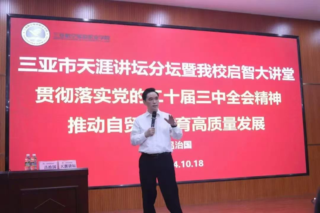 为深入学习宣传贯彻党的二十届三中全会精神,按照省委总体工作部署,学习贯彻党的二十届三中全会精神海南省委宣讲团成员、我校党委书记吕治国,于10月18日下午赴三亚航空旅游职业学院,向全体党员教职工及党员学生代表宣讲党的二十届三中全会精神。