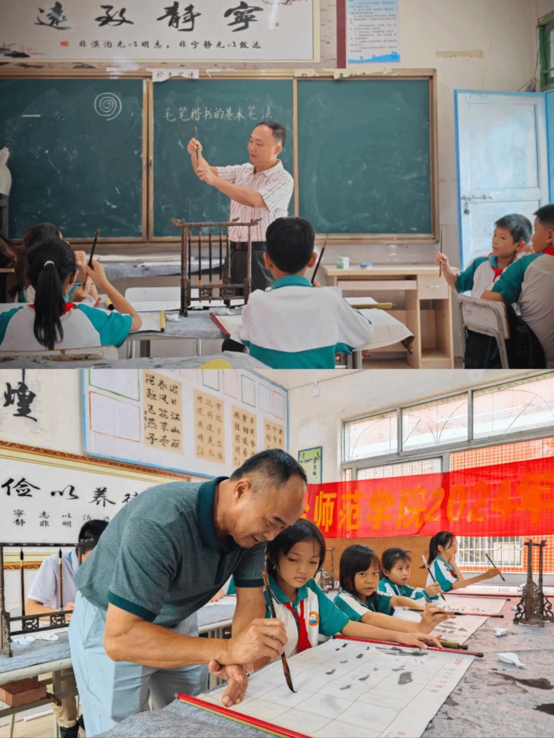 符永老师和叶泽波老师为书法社团的学生讲解毛笔楷书的基本笔法,并现场进行示范、指导,让同学们在书写中领悟汉字之美,品味书写乐趣。