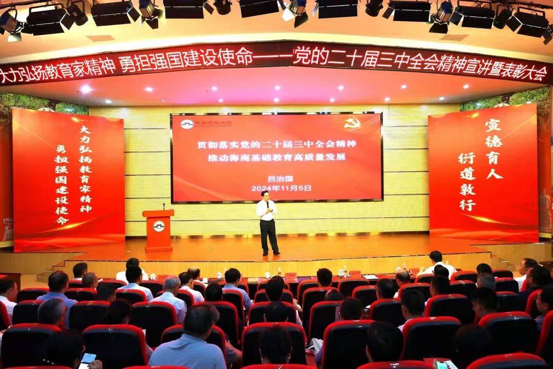为进一步深入学习贯彻党的二十届三中全会精神,11月5日,党委书记吕治国以“贯彻落实党的二十届三中全会精神,推动海南基础教育高质量发展”为题,为我校党员干部和广大师生做专题报告。纪委书记杨智平、副校长银海强,副校长王安兴等校领导出席活动。