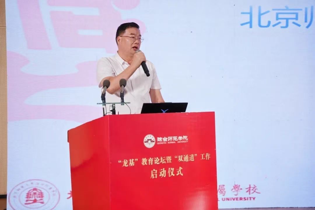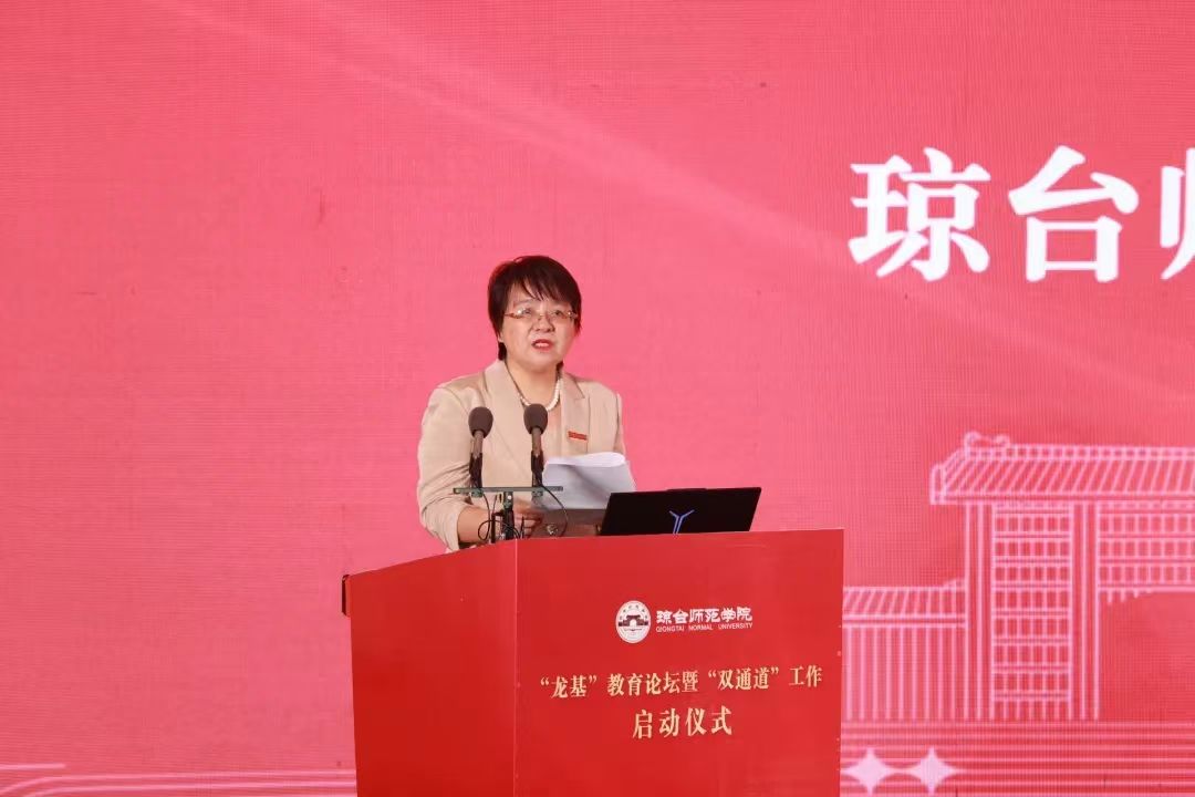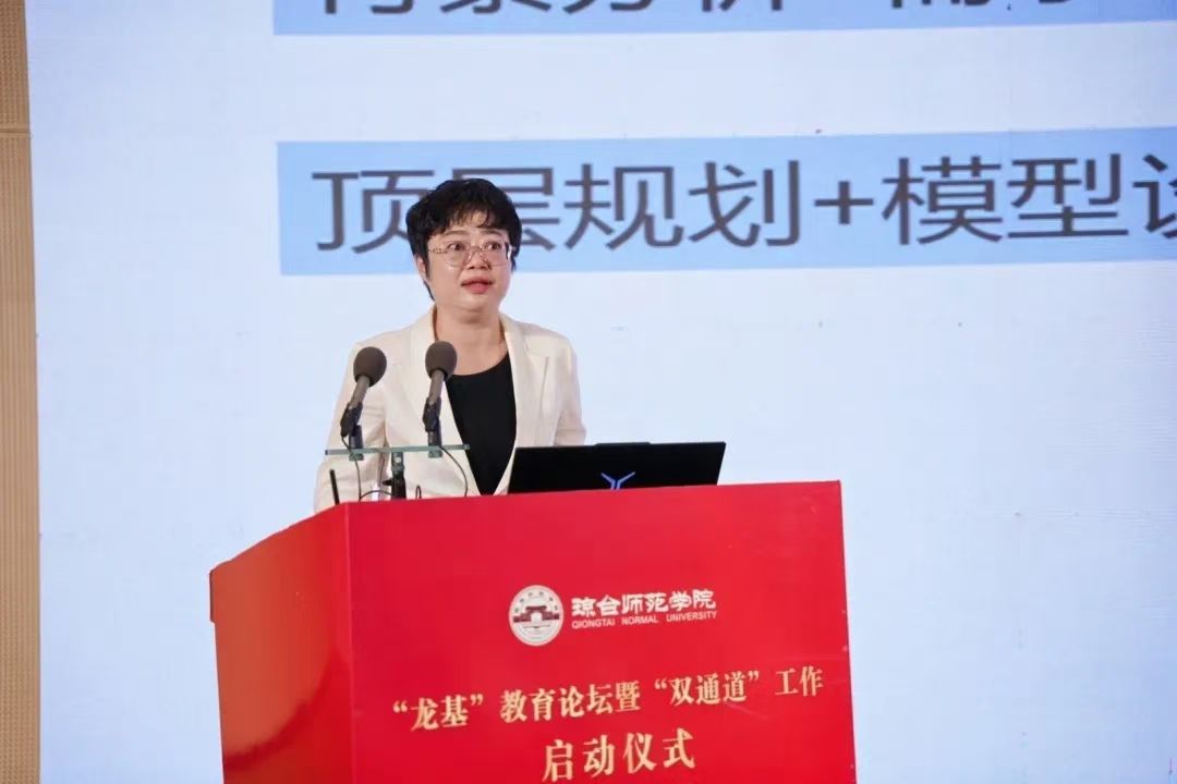 校长刘湘洪发表致辞,介绍了学校的历史和学校发展情况,阐述了本次“龙基”教育论坛和“双通道”工作的重要意义。她指出,“请进来、送出去”“双通道”工作,是琼台师范学院积极响应教育强国建设的重要探索,是精准服务我省基础教育的具体行动,也是提升师资队伍质量、深化教学改革的必要之举。她期待与会的各位同仁,能通过本次“龙基”教育论坛和“双通道”途径,充分交流经验,共同探讨问题,提升育人质量,凝聚教育共识,为深化我省教育教学改革、促进自贸港基础教育高质量发展和推进教育强国建设作出新的更大贡献。