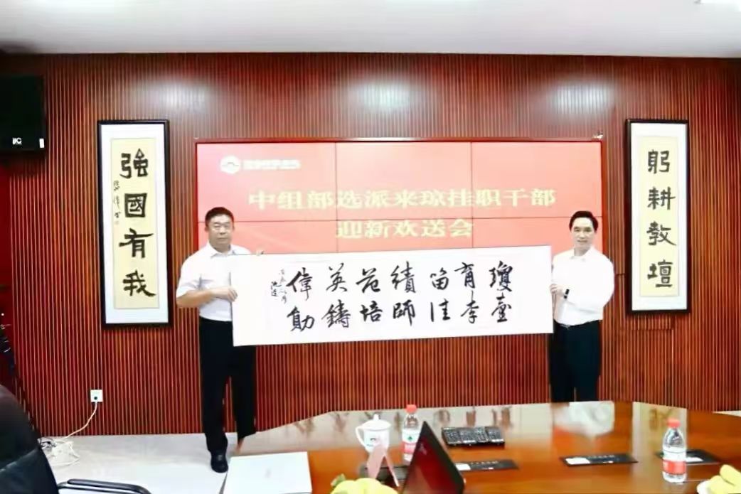 2024年11月15日,琼台师范学院召开中组部选派来琼挂职干部迎新欢送会,热烈欢迎挂职干部岳曼曼同志到任,并与挂职期满、在校工作两年的银海强同志深情话别。党委书记吕治国等校领导出席会议。会议由吕治国主持。