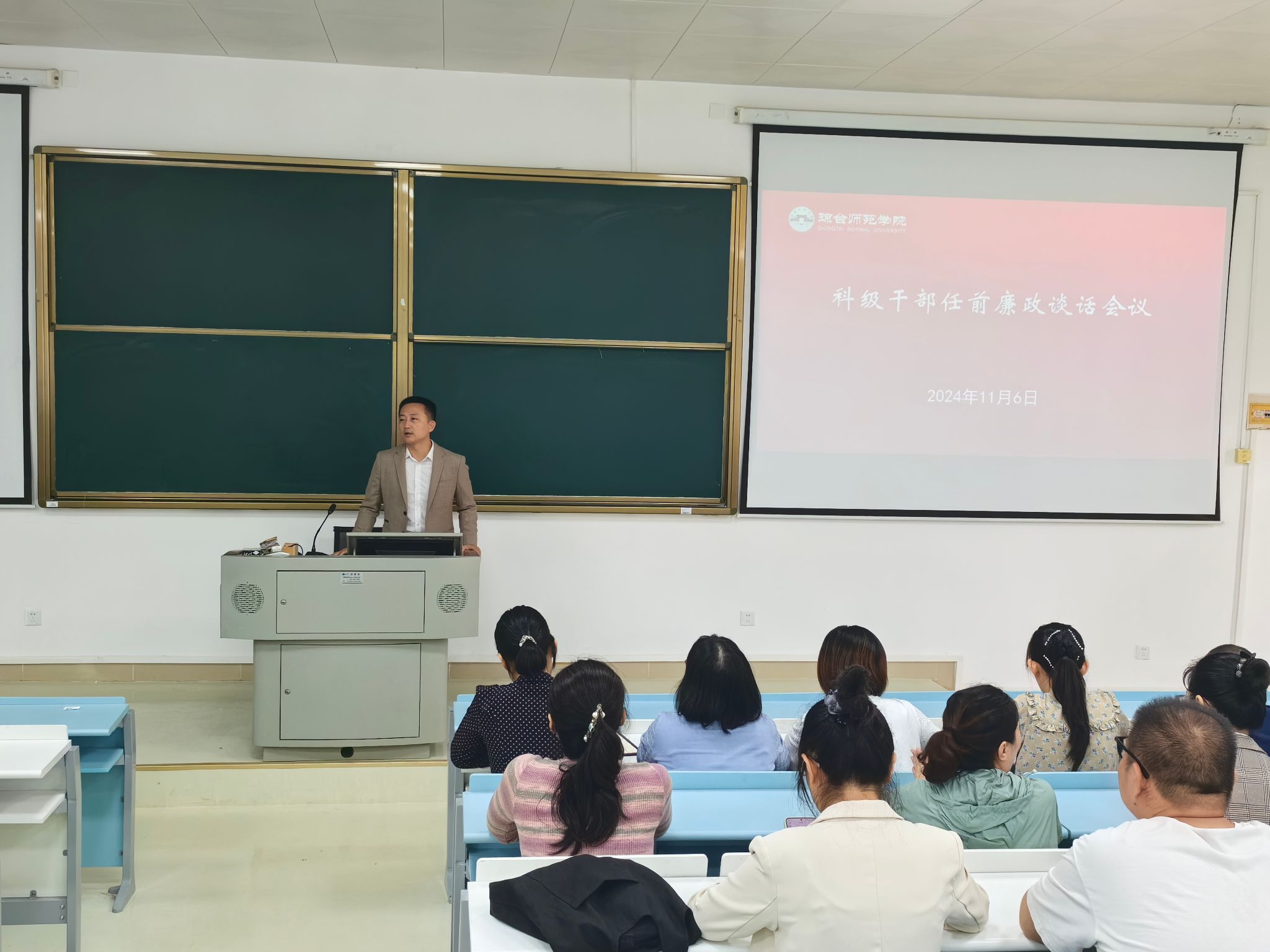 干部任前廉政谈话是推进全面从严治党向纵深发展的重要制度性安排,也是加强学校干部队伍建设的重要举措。校纪委将此次廉政谈话分为党政机关管理岗、教学教辅管理岗中层领导干部、理学院领导班子、信息科学技术学院领导班子和科级干部(正科级辅导员)等5个谈话组,根据每批次谈话对象的岗位职责,分类设置谈话提纲,深入分析岗位的职责以及潜在的风险,提出今后工作努力方向,为履新领导干部“增干劲”,使廉政谈话既有温度有力度有深度,又能谈在点子上、谈到心坎里、谈出好成效。