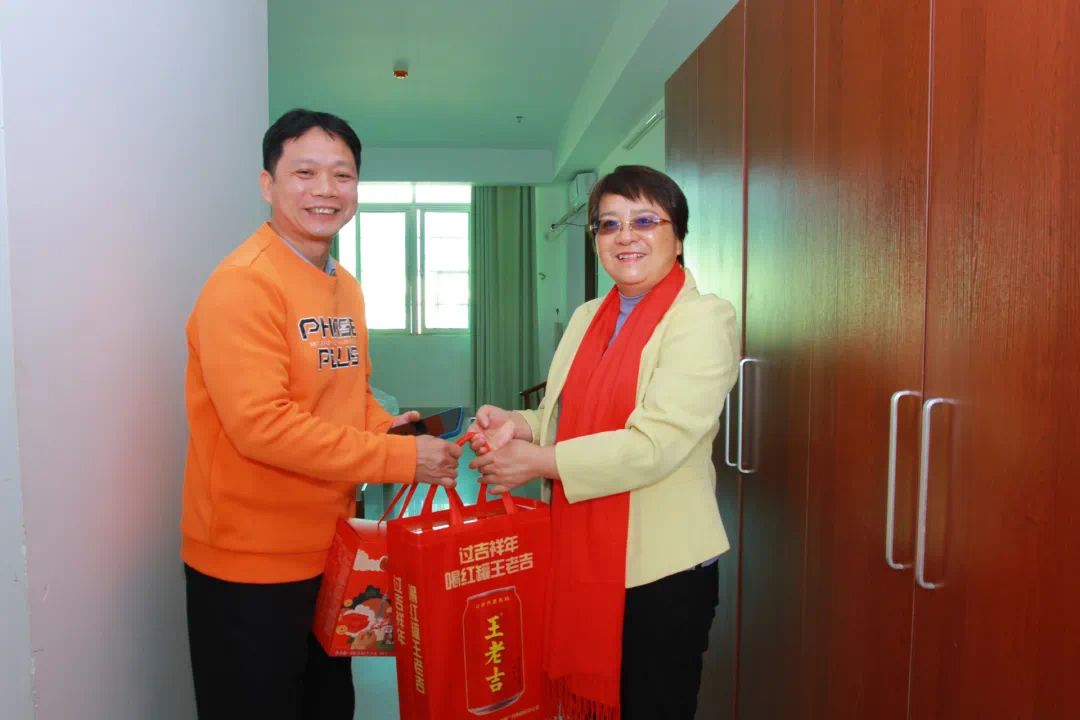 在慰问过程中,刘湘洪校长为每一位值班人员送上了慰问品,并与他们亲切交谈,了解他们的工作和生活情况。他叮嘱大家在坚守岗位的同时,也要注意休息,合理安排工作时间,确保以饱满的精神状态投入到工作中。