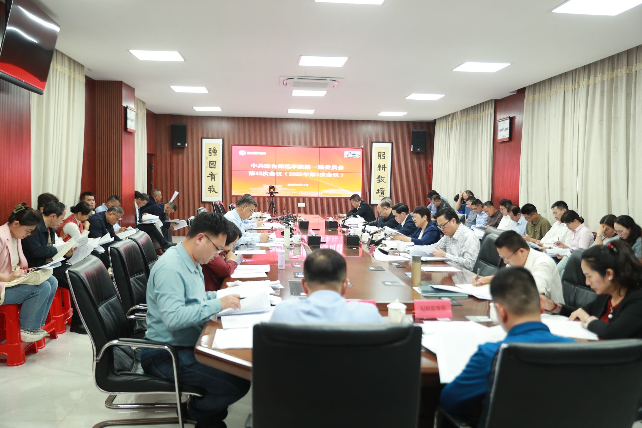 2月18日,我校在桂林洋校区敦行楼三楼会议室召开党委会,传达学习习近平总书记重要文章《健全全面从严治党体系》和2025年全国、全省教育工作会议精神,并对贯彻落实关于全面从严治党工作及教育工作会议精神作出工作部署。校党委书记吕治国主持会议。党委副书记、校长刘湘洪等校领导出席会议。