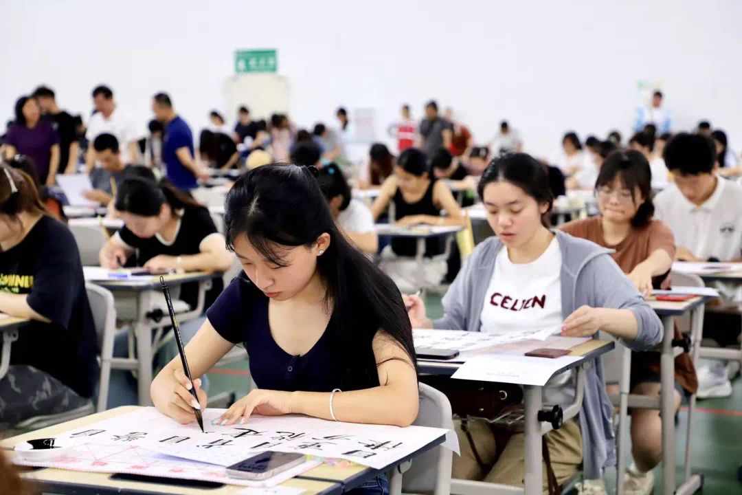 现场气氛紧张而热烈,只见选手们或凝神静气或运笔如飞,在方寸之间勾勒出汉字的美感与力量。一幅幅书法作品展现了选手们扎实的书写功底和对书法的深刻领悟。