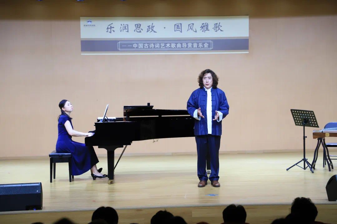 6月5日下午,一场以“乐润思政 国风雅歌”为主题的古诗词艺术歌曲音乐会在我校琼先楼音乐厅举行。本次音乐会特邀了低男中音歌唱家赵岩、大连大学音乐学院张楠副教授、山西大学音乐学院周娜教授以及海南艺术职业学院廖裕文副教授,与我校音乐学院的王磊教授、黄瑀副教授共同为观众带来了精彩纷呈的演出。校长刘湘洪出席音乐会。