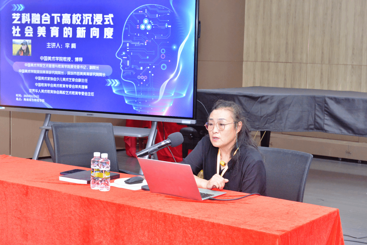 岳曼曼谈到,我校将一如既往地依托学科优势与区域特色,联合高校与中小学,建立“高校—政府—中小学”三位一体美育协同机制,共同打造适合海南省区域特色的的校本课程和教师成长体系。
