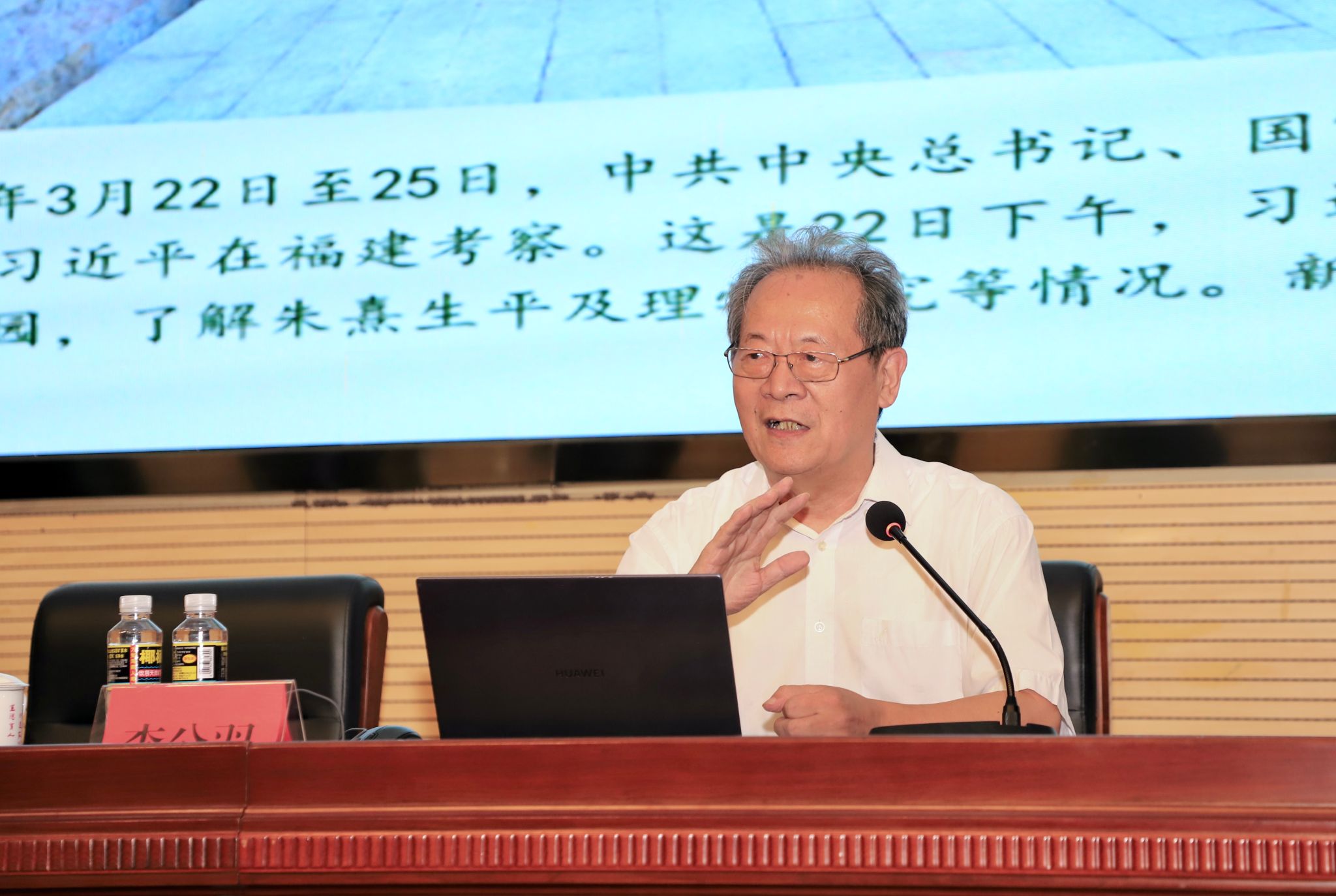 6月10日,我校在桂林洋校区图书馆报告厅举办家风家教与廉政建设专题讲座,特别邀请海南省习近平文化思想宣讲团成员、中国苏轼研究学会副会长、海南省苏学研究会理事长李公羽先生以《注重家风建设 增强家国情怀》为题作专题讲座,讲座围绕学习习近平总书记的东坡情怀、三苏的家风家教、清廉人生的时代意义等三方面展开。文学院党委书记符永主持讲座。