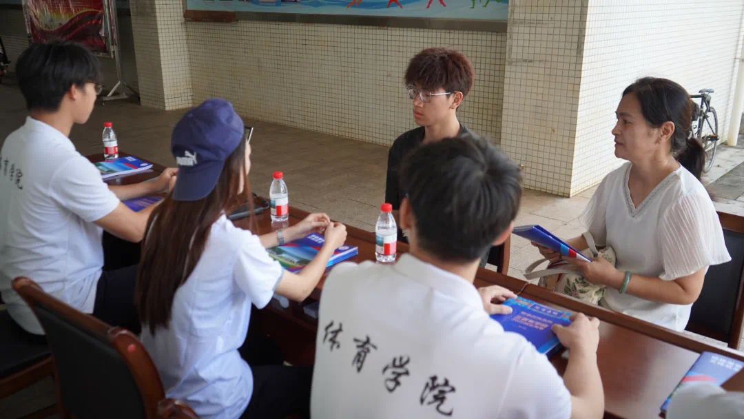 早晨8点,招生就业工作处、教务处、学生工作部(处)、团委等各部门及各二级学院工作人员在咨询点位上细致整理材料、调试设备,以饱满的精神状态迎接考生与家长。与此同时,学生志愿者们在校门口和各咨询点有序设岗,接待前来的家长和学生。