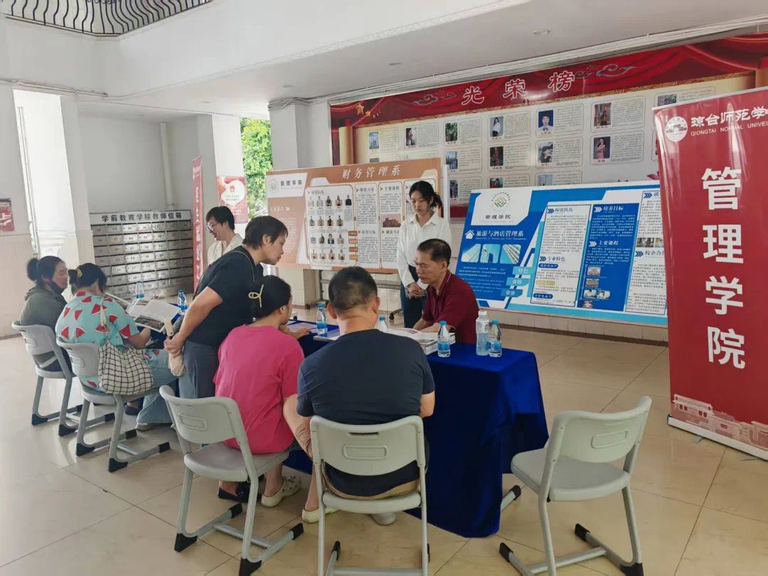 前来参观的学生和家长漫步于校园里,深入了解琼台悠久的办学历史和校园文化,沉浸式体验缤纷的大学生活。各部门、二级学院负责人、学工干部和学生志愿者与学生和家长进行面对面交流,展示专业特色、培养方案和育人优势,帮助考生和家长全面了解学校招生政策、专业设置、往年录取分数线以及各专业就业方向等相关问题,提供“一站式”咨询服务。