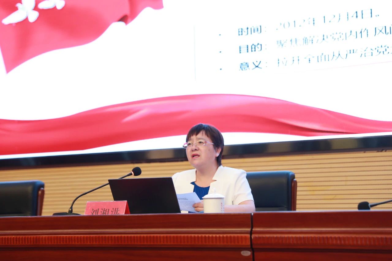 刘湘洪指出,全体党员要提高政治站位,确保思想认识到位。要在深学细悟中筑牢思想根基,深刻认识八项规定是新时代全面从严治党的“先手棋”,准确把握八项规定对学校治理的实践要求,切实增强贯彻落实的政治自觉和责任担当。要强化担当作为,勇挑发展重任。要练就履职尽责的真本事、硬脊梁、铁肩膀,担责尽责、不负重托、不辱使命,能敢于扛重活、打头阵,能敢于直面矛盾、破解难题,以实干实绩诠释担当,用结果效果检验能力,实现学校各项事业的快速发展。要聚焦突出问题,抓实抓常作风建设。要持续以“转作风、强教风、正学风”为引领,弘扬校园廉洁新风正气,推动学科调整促革新、推动制度建设求长效,将作风建设成效切实转化为推动学校事业发展的强大动能,纵深推进学习教育走实走深。要强化纪律约束,保持清正廉洁。要发扬彻底的自我革命精神,自觉做良好政治生态的有力促进者,清清白白做人、干干净净做事,坚持加强廉洁教育和纪律教育,引导广大教师员工知敬畏、存戒惧、守底线,营造风清气正的育人环境。