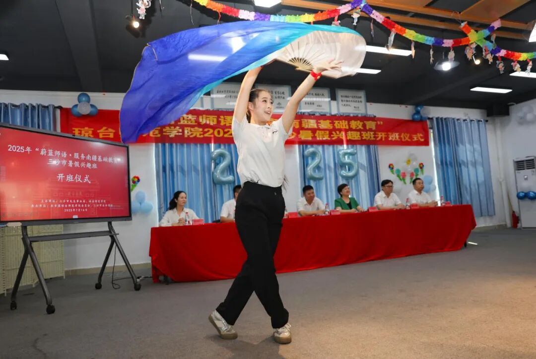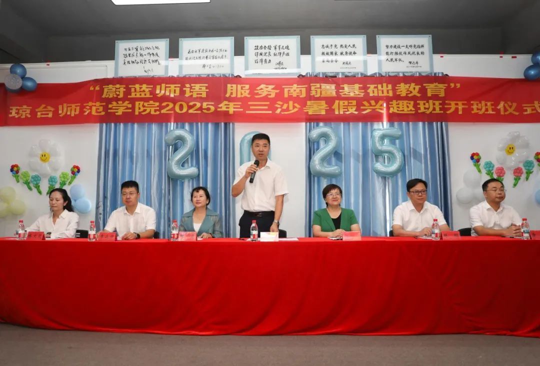 刘湘洪谈到,“蔚蓝师语”作为学校服务三沙基础教育、落实“双减”政策的重要载体,自2018年起已连续八年以寒暑假兴趣班形式,围绕“红色铸魂、绿色培根、蓝色润心”理念开展素质教育,既丰富了驻岛子女假期生活,更在潜移默化中培育“三沙二代”爱党爱国爱岛的家国情怀。她表示,新一届“蔚蓝师语”团队师生要在民生事业局的关怀指导下,严肃各项工作纪律,严格落实工作任务,严守师范初心使命,切实以暖心、贴心、细心的行动组织好各项兴趣活动,展现琼台学子的良好风范。