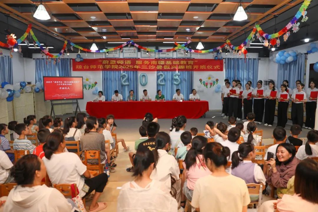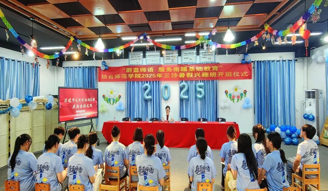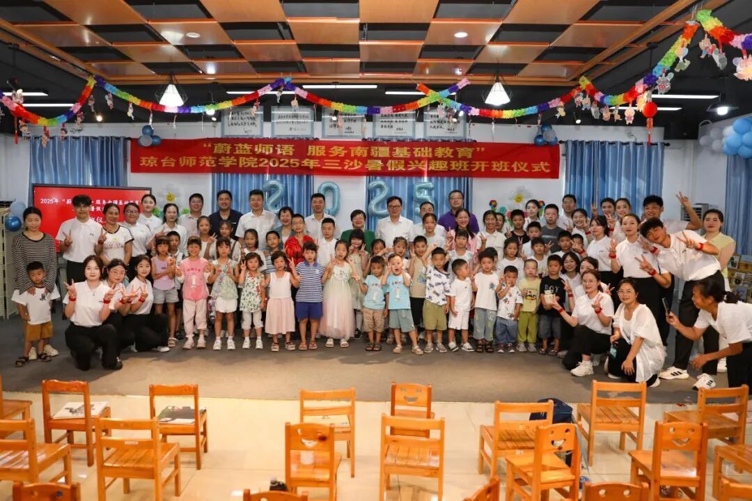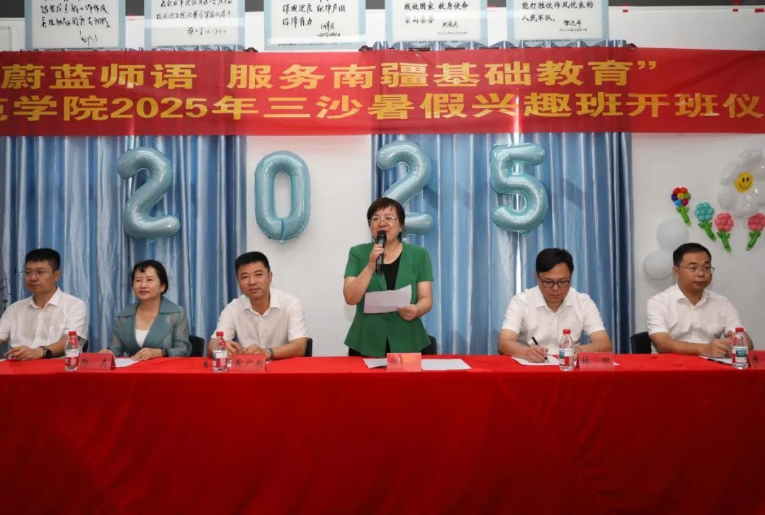 7月16日上午,“蔚蓝师语 服务南疆基础教育”2025年暑期兴趣班在三沙永兴学校临时校区如期开班。我校校长刘湘洪、副校长林琛一行赴三沙出席仪式,与三沙市副市长黄广南,市民生事业局局长邢真、副局长李远方,以及“蔚蓝师语”支教团师生、60余位驻岛军警民子女及家长代表共同见证这一温暖时刻。