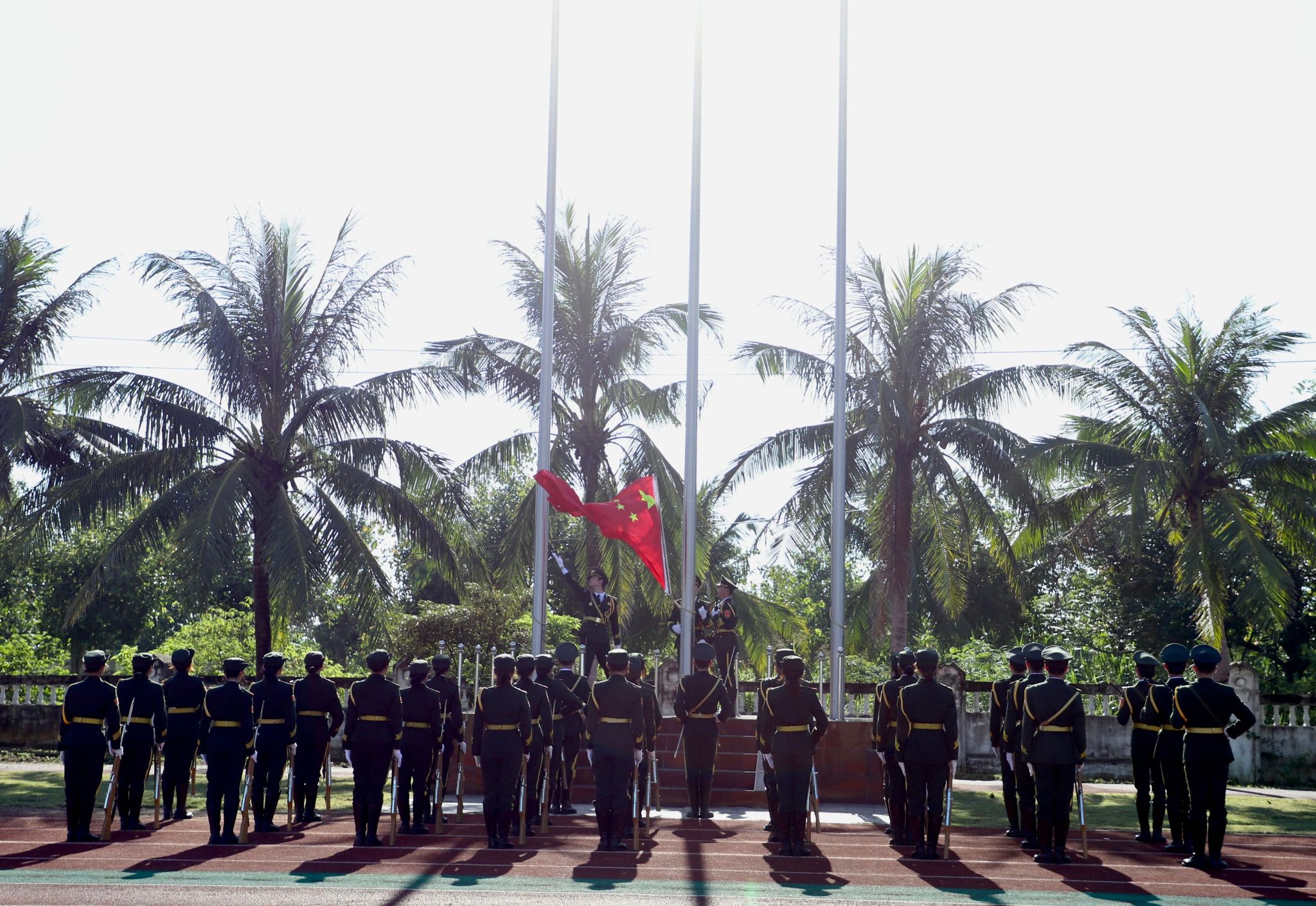伴随着庄严的国歌,五星红旗冉冉升起,大会正式拉开帷幕。