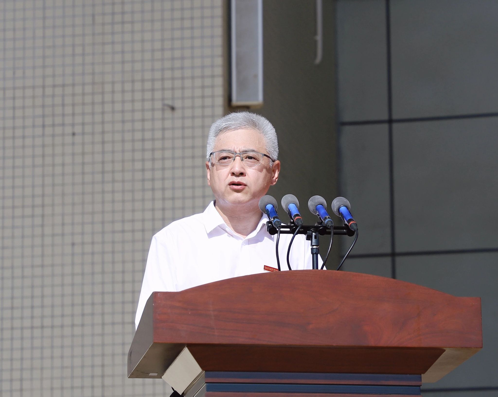 李宇飞代表学校向培育新同学的父母、师长致以崇高敬意,向2025级新同学表示热烈欢迎与祝贺!他谈到,我校创办于 1705年的琼台书院,至今320年历史,是海南“进士摇篮”“革命摇篮”“教师摇篮”,历史悠久、底蕴深厚。他希望,一是要以“敢为琼先”精神厚植家国情怀。把个人理想融入国家发展的洪流,始终心怀“国之大者”,擦亮“敢为琼先”底色,努力成长为担当强国建设、民族复兴大任的时代新人。二是要以“敢为琼先”精神磨砺刚毅品格。要涵养崇尚奋斗、不怕吃苦的精神品质,做强健身心、砥砺品格者,做负责任的行动派、能吃苦的力行者。三是要以“敢为琼先”精神提升能力。要成为能独立思考,善于表达、写作,具备较强的逻辑思维能力的学生,要提升自我健康管理水平,成为热爱运动、强身健体的时代新人。