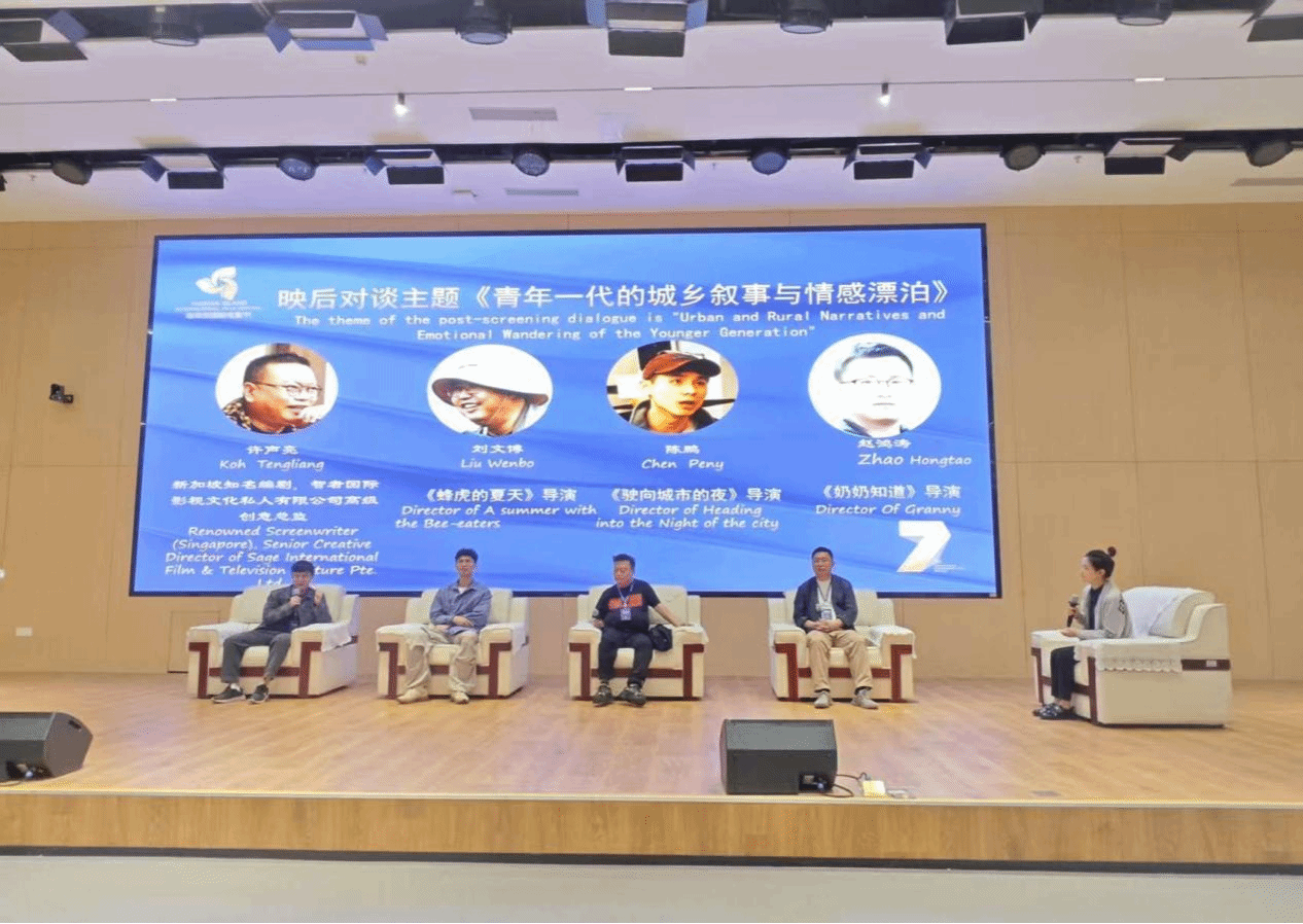 映后交流环节由文学院刘搦辰博士主持,围绕“青年一代的城乡叙事与情感漂泊”核心主题,与四位导演展开深度对话。导演们分享了创作初衷、拍摄历程中的探索与思考,以及对青年影像表达、跨文化传播的独特见解。