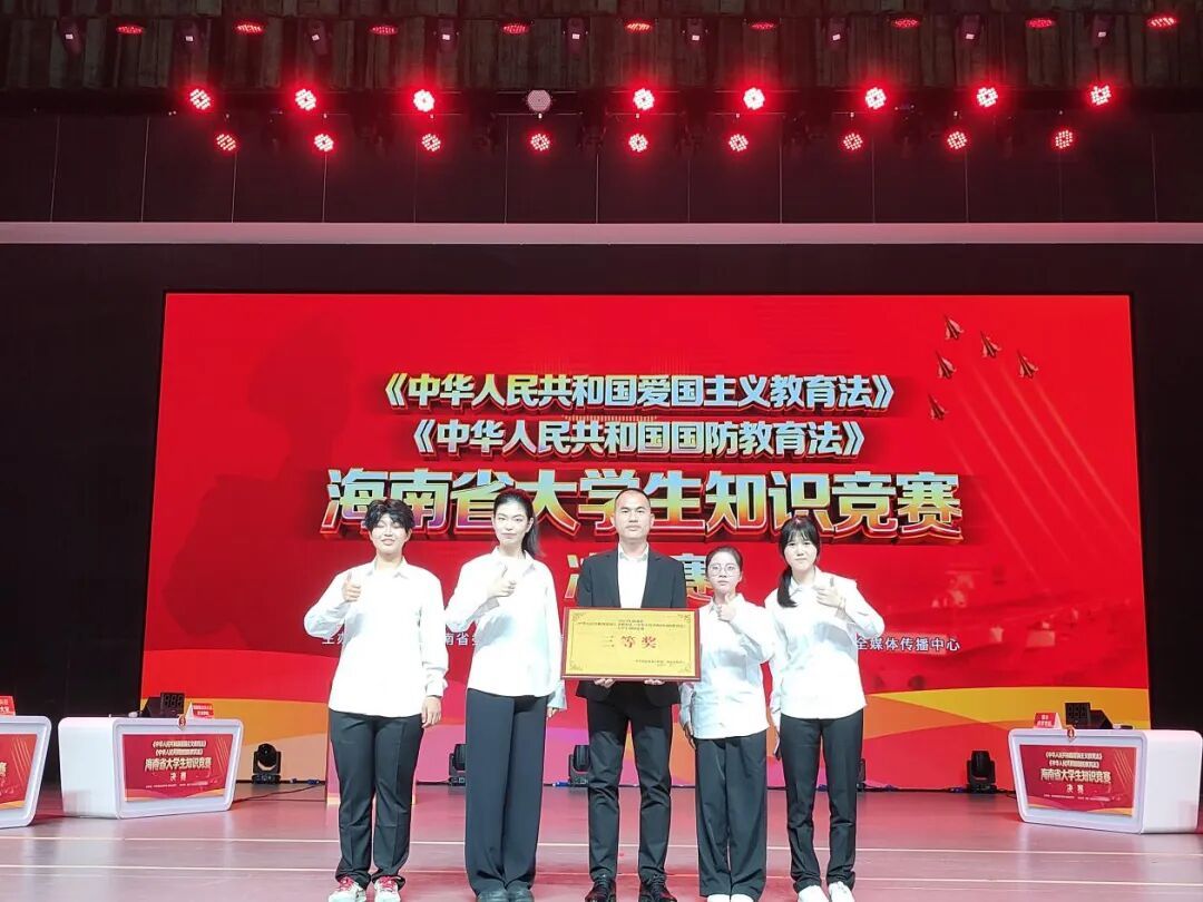省赛现场,我校代表队凭借扎实的功底、敏捷的思维和默契的配合,在必答题环节稳扎稳打、从容应对,在抢答题环节反应迅速、果敢出击,在风险题环节审时度势、勇毅抉择,充分展现了琼台学子 “懂国防、爱祖国、敢担当” 的精神风貌。经过多轮激烈角逐,我校代表队最终斩获竞赛第三名的好成绩,王达恒老师荣获 “优秀指导教师奖”。
