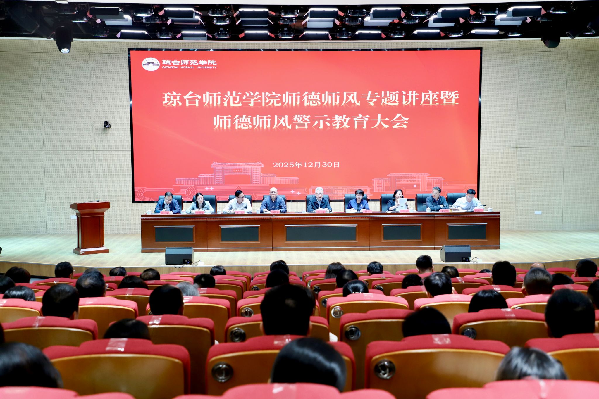 为深入学习贯彻习近平总书记关于教师队伍建设和师德师风工作的重要论述,进一步筑牢师德根基、涵养高尚师风,12月30日下午,我校在桂林洋校区琼先楼二楼东侧会议室隆重举行师德师风专题讲座暨师德师风警示教育大会。全体校领导、副科级以上干部、全体辅导员及各二级学院教师代表参加大会。会议由党委委员、副校长王琰春主持。