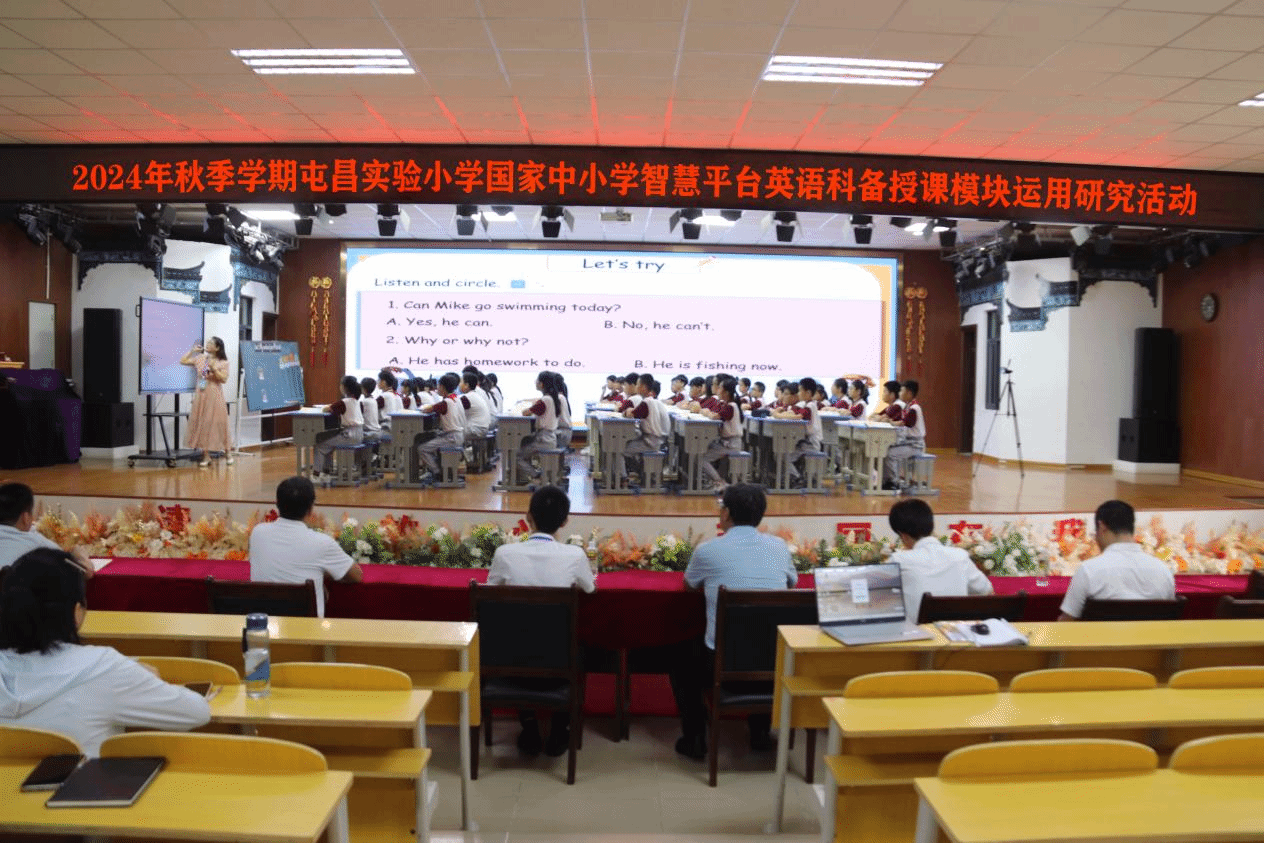 10月11日,调研组首先参观了屯昌县实验小学、向阳中心小学、坡心中心小学,深入课堂观摩了国家中小学智慧教育平台在实际教学中的融合应用情况,县教育局党委书记、局长甘兰荣, 县教育局党委委员、副局长赵三刚等领导全程陪同调研组一行。随后,调研组与各校领导及教师代表召开座谈会,听取了关于平台使用情况的汇报,详细了解了各学校试点工作的推进情况、教师培训情况、教师积分及学校积分情况以及基础设施建设情况。