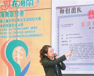 去年9月,王露渝和几名同学一起创立了“海南岛的文化发展有限公司”,主营会展策划、赛事策划、项目策划等业务。在企业出资支持下,该公司举办竞赛活动,向全国高校学生征集企业所需创意作品。此举除了为企业发展提供创意,还能为众多大学生提供社会实践机会。