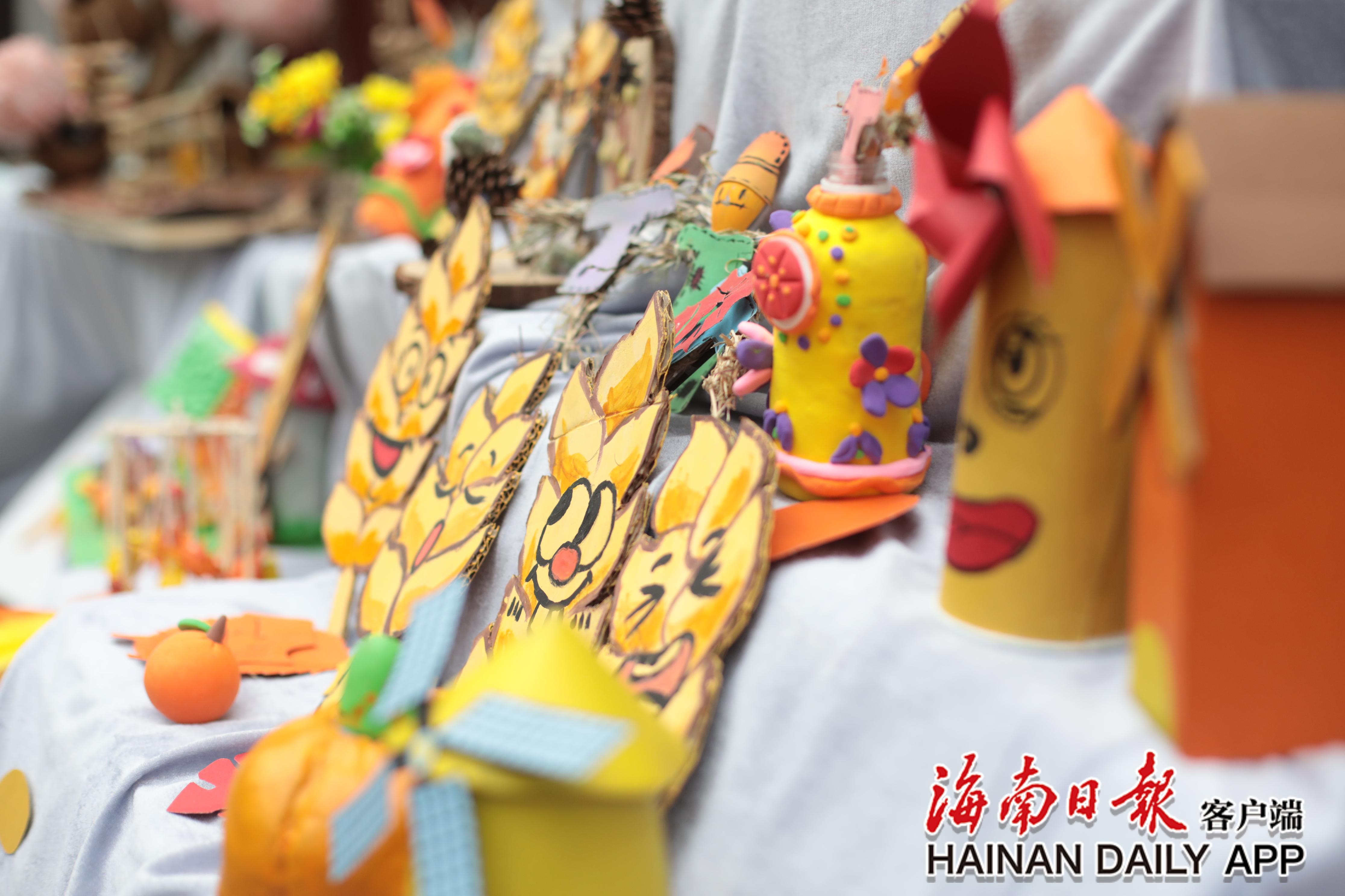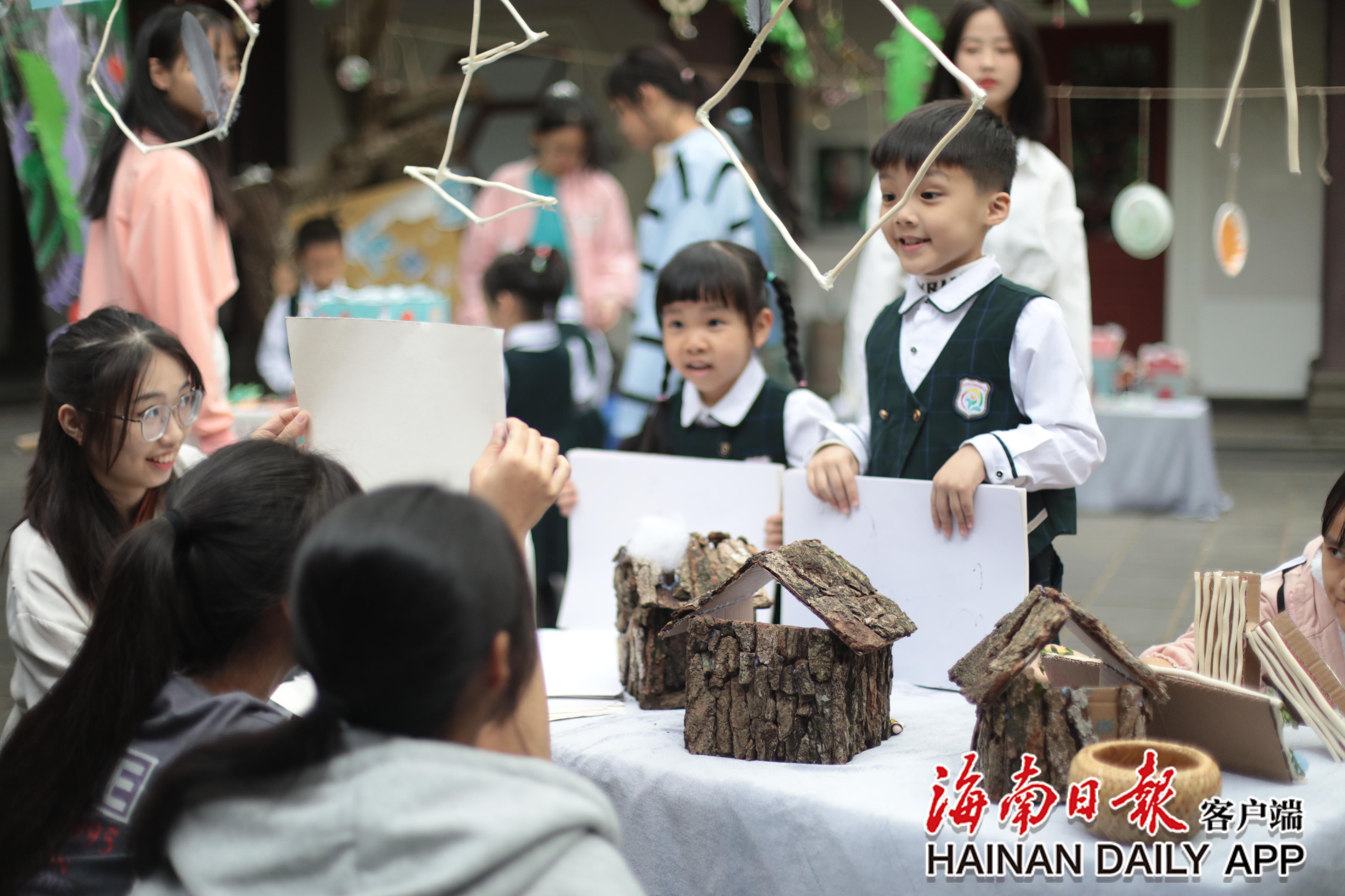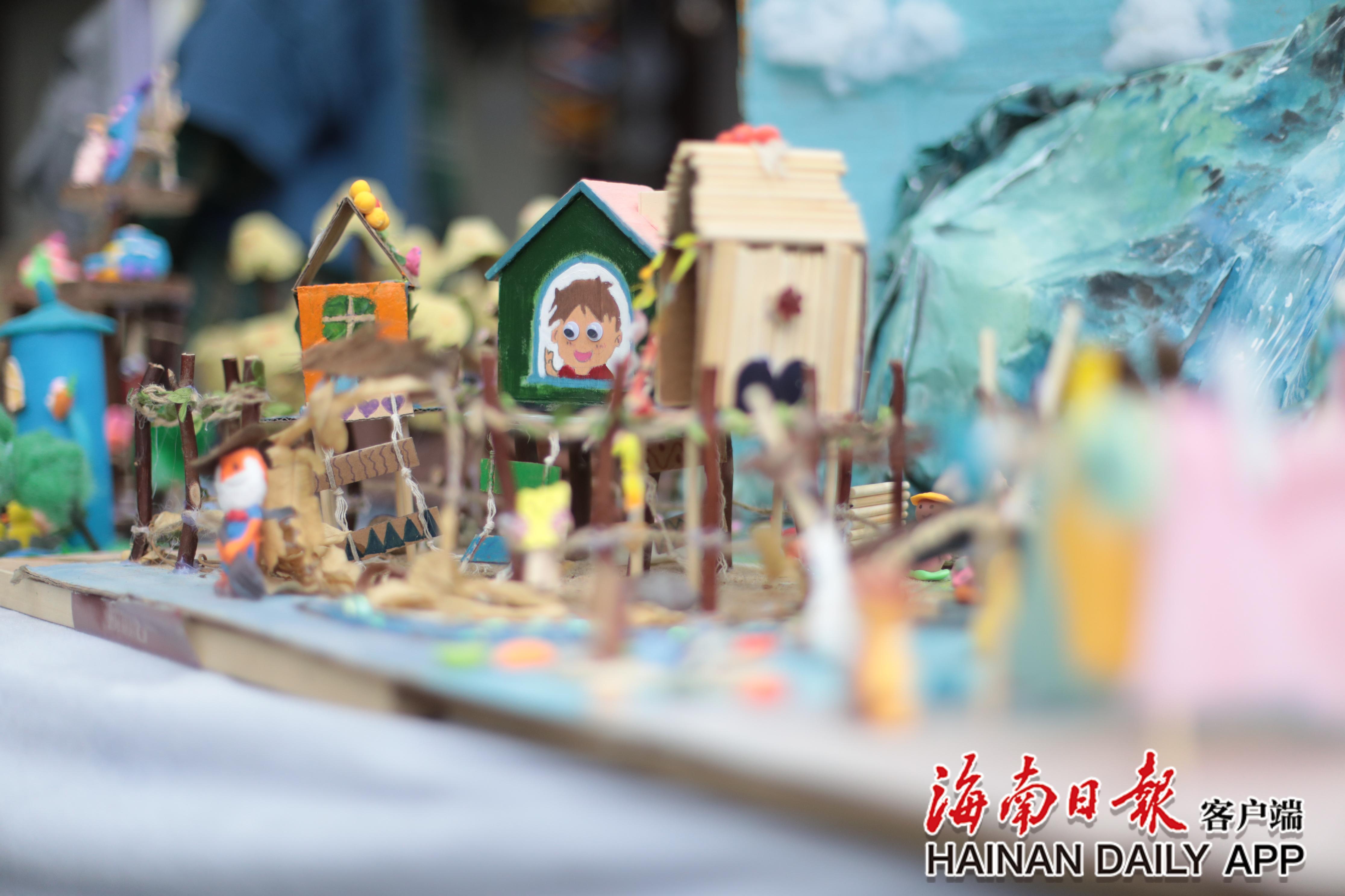 海南日报记者在展览现场看到,布展过程中,活动主办方以幼儿为中心,从幼儿的视角出发,力求展览充分体现自然奥秘与童趣。纸皮制作的动物模型、木头制作的微缩景观、树叶制作的门帘等等,深受参观幼儿的喜爱。