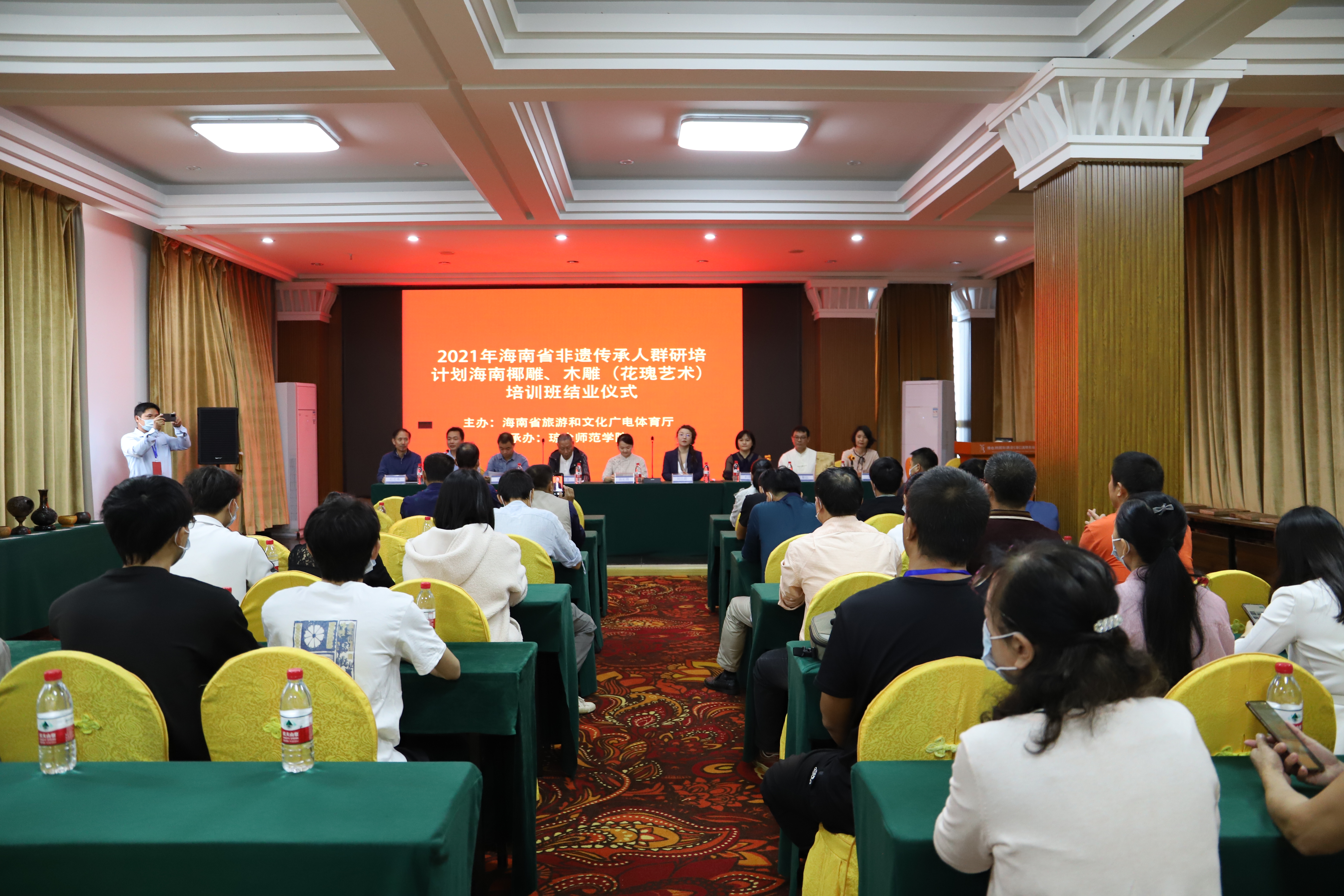 11月28日上午,由海南省旅文厅主办、琼台师范学院承办的2021年海南省非遗传承人群研培计划——海南椰雕、木雕(花瑰艺术)研培班在海口结班。