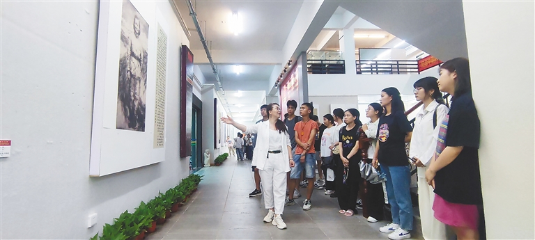 近日,在琼台师范学院美术馆里,该校2019级美术学专业学生黄甘萍在一幅中国画作品前久久驻足,画中的人物是她曾在校史里读到的琼崖革命先驱——杨善集。