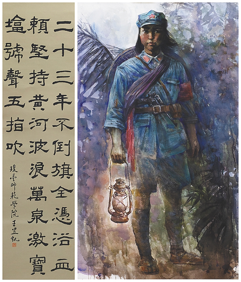这一作品是“英雄在我们心中”琼崖革命人物美术书法作品展的展品之一。为庆祝中国共产党成立100周年,琼台师范学院美术学院组织师生和校友,以琼崖革命人物及其事迹为主题,创作了250余幅书画作品,最终优中选优展出了67组。展览自今年9月10日启幕以来广受好评,成为该校为庆祝党的百年华诞献上的又一诚意之作。