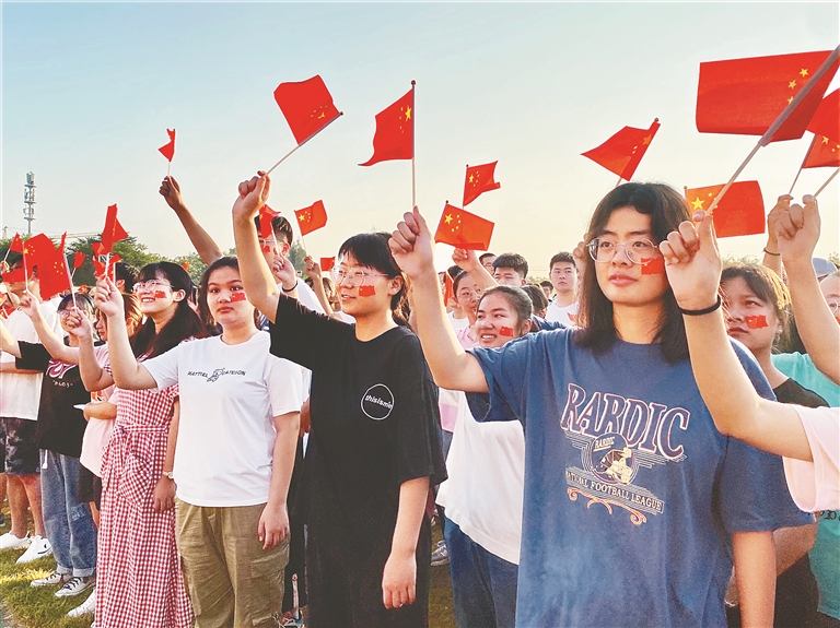熟悉的旋律响起,一曲《我和我的祖国》唱出师生共同的心声。来自广西柳州的琼台师范学院2021级新生黄丹阳被现场气氛感染,高高地挥舞着手中的国旗。“每一次升旗仪式,都是一次爱国主义教育。看着迎风飘扬的国旗,我们热血沸腾、深受鼓舞。”她说,入校一个月来,她通过参加党史学习教育和校园各项活动,对琼台师范学院、对海南自由贸易港有了更深入的了解,“希望在这所底蕴深厚的学校、在这座欣欣向荣的海岛学有所获,成长为可堪大任的中国青年。”