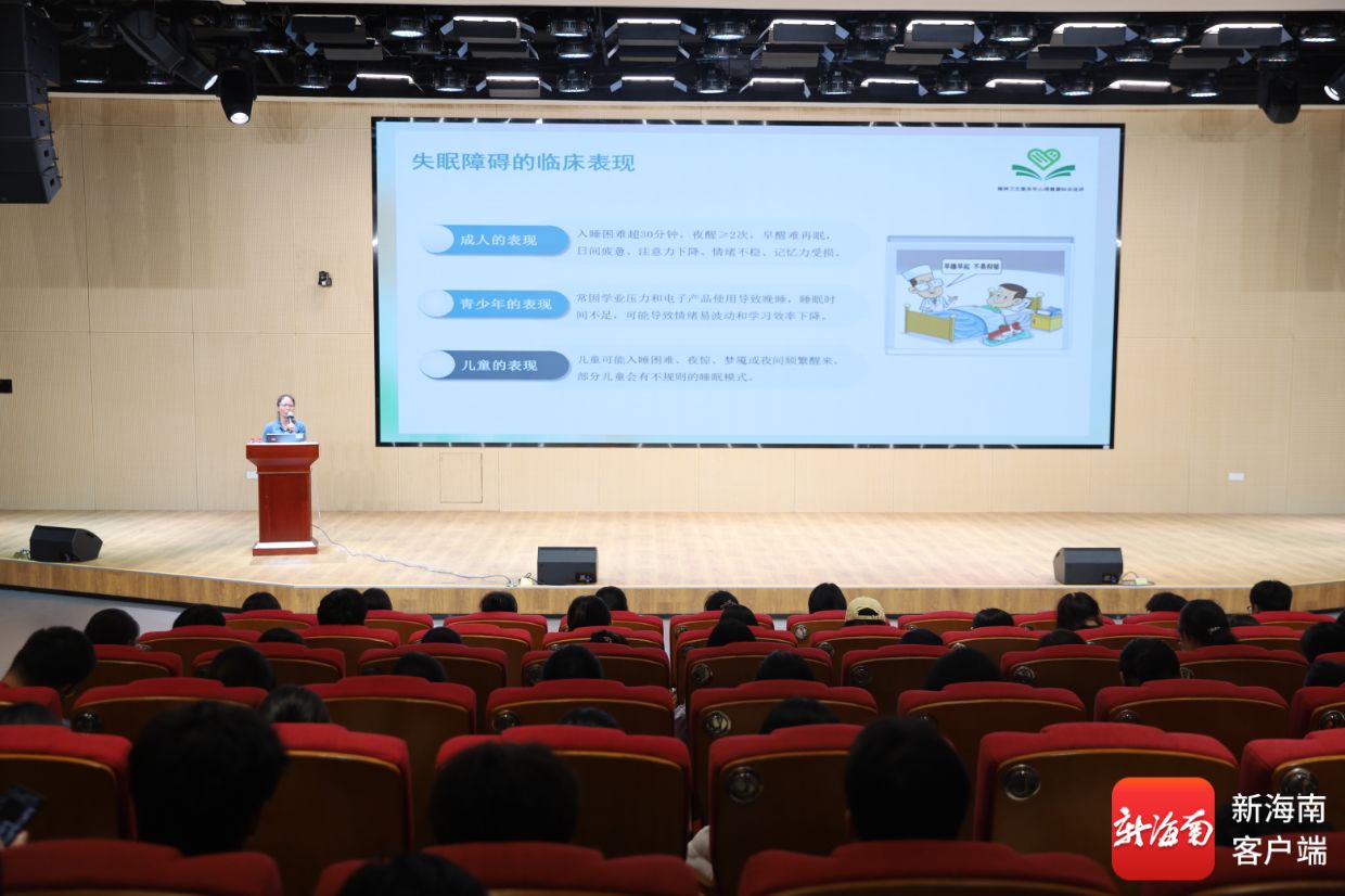 南海网、新海南客户端9月26日消息(记者 李文韬)9月25日,海南省安宁医院“六进”活动走进琼台师范学院桂林洋校区。海南省安宁医院综合科(重症医学病区)神经内科主治医师王明霞以“睡眠问题的预防和管理”为主题开展专题讲座,为现场学子带来一场兼具专业性与实用性的睡眠健康科普盛宴。
